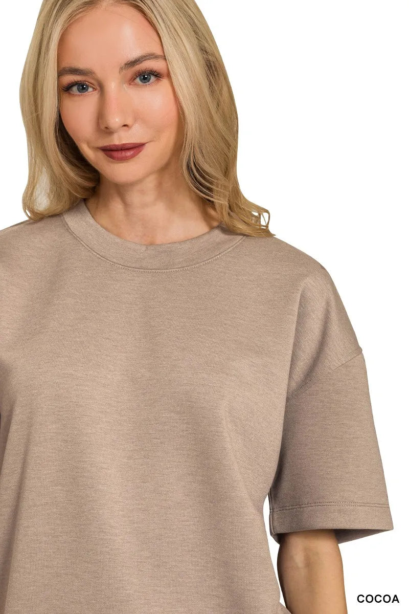 Step up your casual style with our scuba short sleeve top and shorts set. Made from a comfortable and stretchy scuba fabric, this set is perfect for lounging or running errands in style. The short sleeve top features a relaxed fit for easy wear, while the matching shorts offer a trendy and coordinated look. Whether you're relaxing at home or out and about, this set provides a chic and put-together outfit option. Upgrade your wardrobe with this versatile and trendy scuba set for effortless and comfortable style.