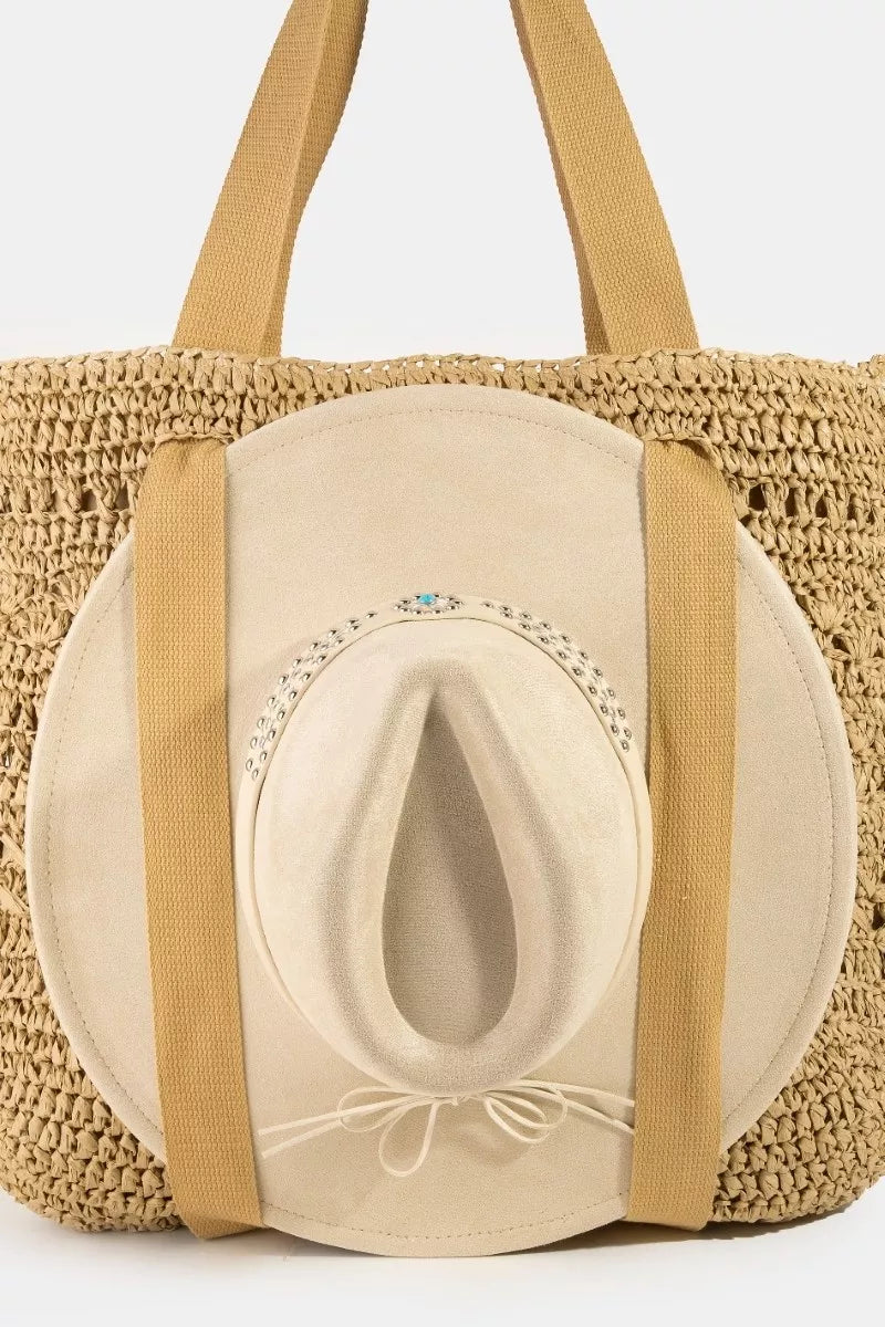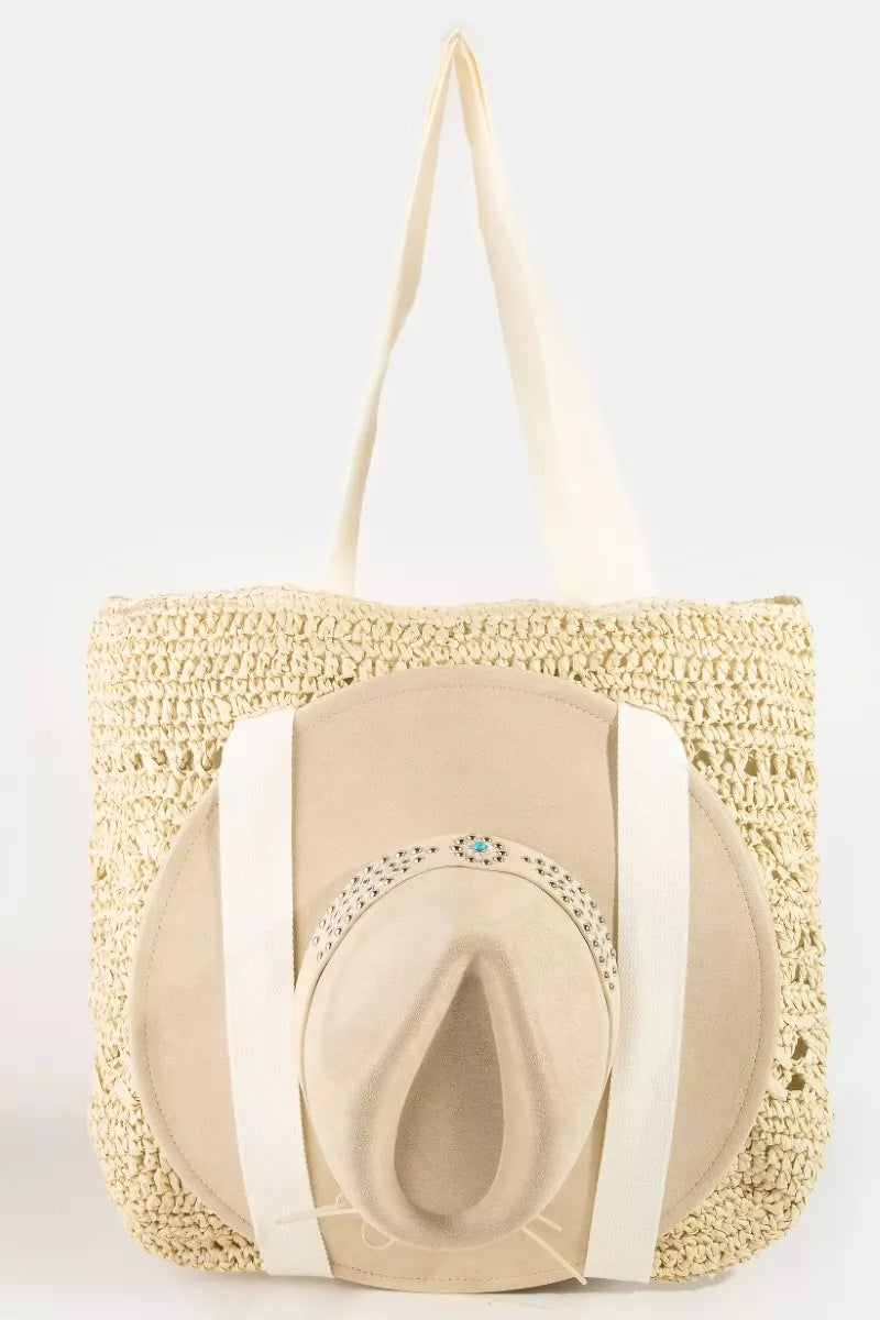 A large straw braided tote bag with a hat holder is a stylish and practical accessory for your summer outings. This versatile tote bag is perfect for carrying your essentials to the beach, pool, or while running errands. The braided straw design adds a trendy and bohemian touch to your look, while the spacious interior provides plenty of room for your belongings. The added hat holder feature allows you to conveniently store and protect your hat while on the go. Stay fashionable and organized with this chic and functional large straw braided tote bag with hat holder.