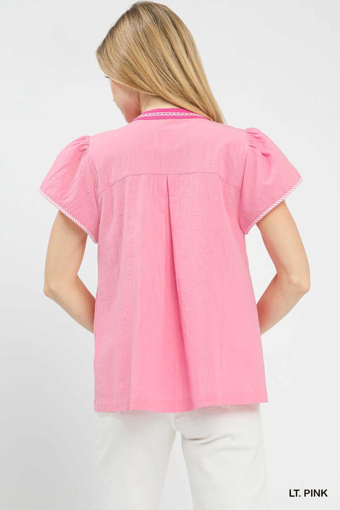 This Abstract Applique Split Neck Top features unique abstract applique details and a flattering split neck design. Made with lightweight fabric, it offers a comfortable fit and modern style for daily and casual occasions.