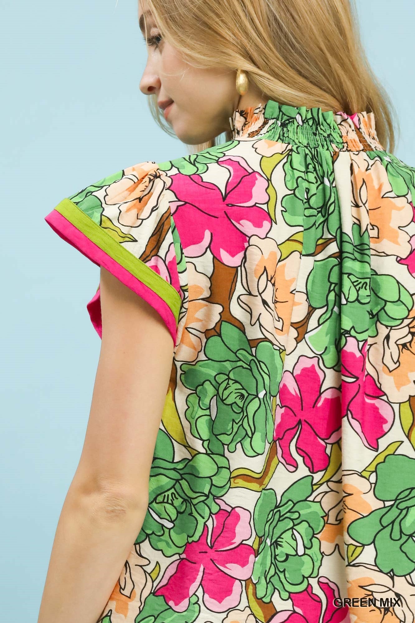 This Floral Print Blouse with Contrast Trim features a fresh floral print and delicate contrast trim. It has a lightweight, flattering fit that adds a feminine and stylish touch to any casual or daily outfit.