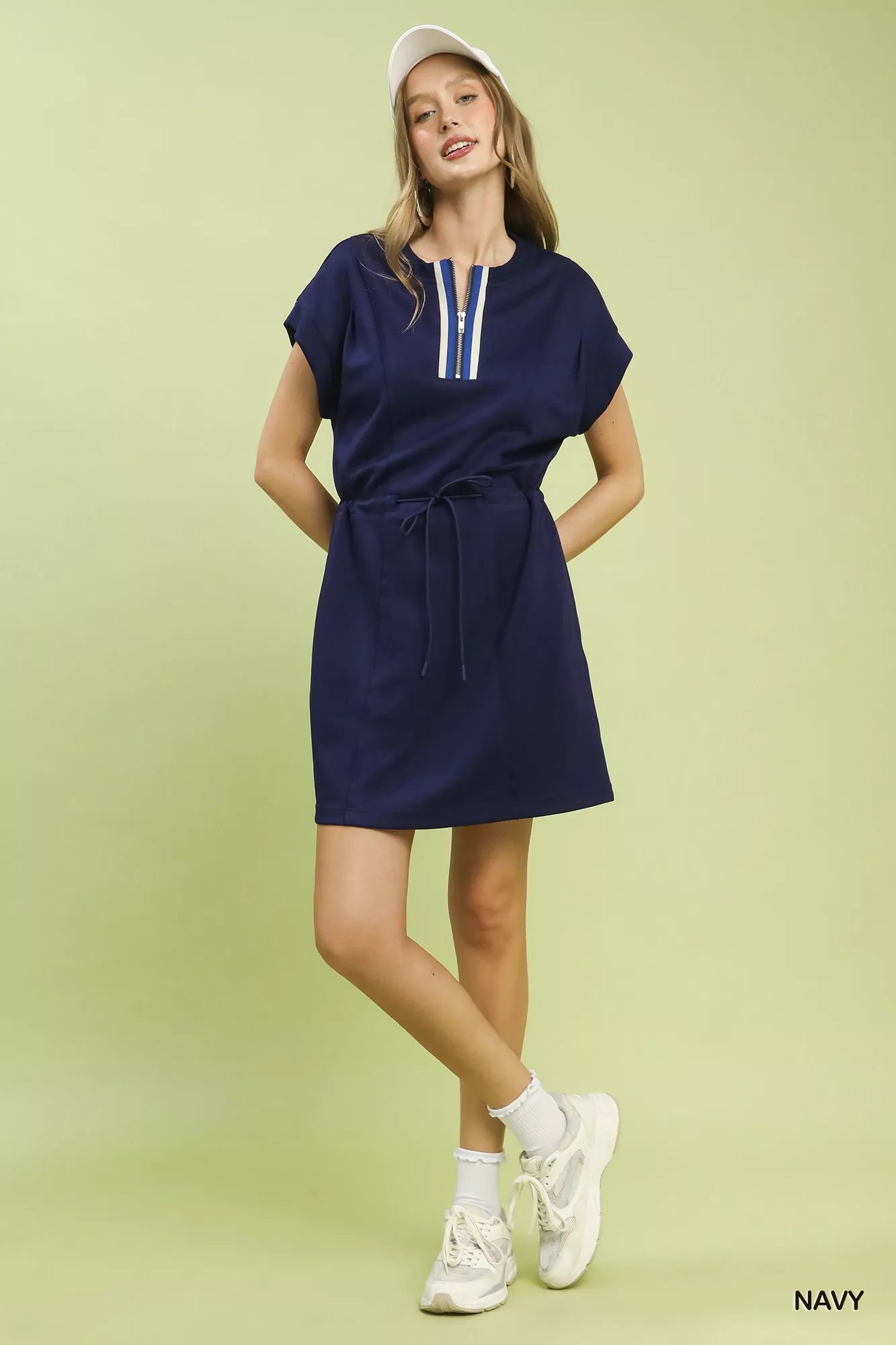 The Knit Zip Front Drawstring Dress is a stylish and versatile piece for your wardrobe. Its zip-front design with contrast trim adds a modern touch to the dress. The short dolman sleeves offer a relaxed and laid-back look, perfect for casual wear. With an adjustable drawstring waist, you can customize the fit to suit your silhouette. The contrasting details add a chic element to the overall design. Please note that this dress is not lined, providing a lightweight and breathable feel for comfort. Elevate your casual style with this trendy and easy-to-wear dress that combines fashion and functionality seamlessly.