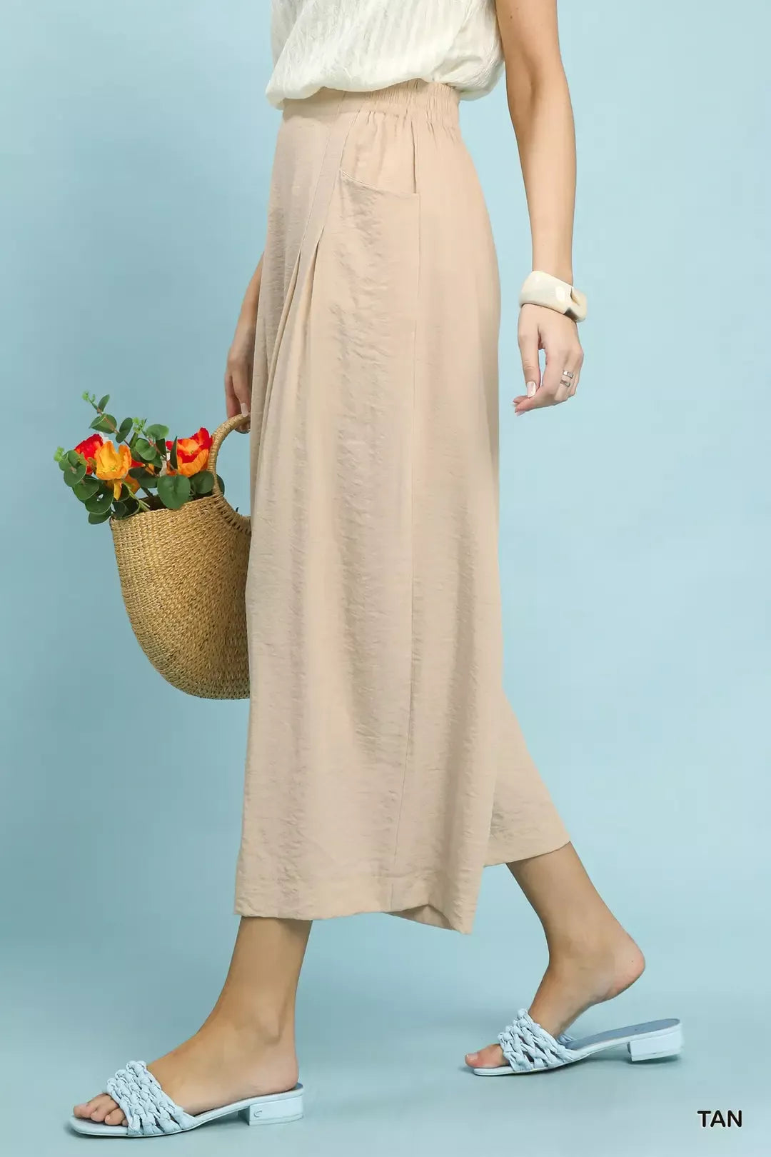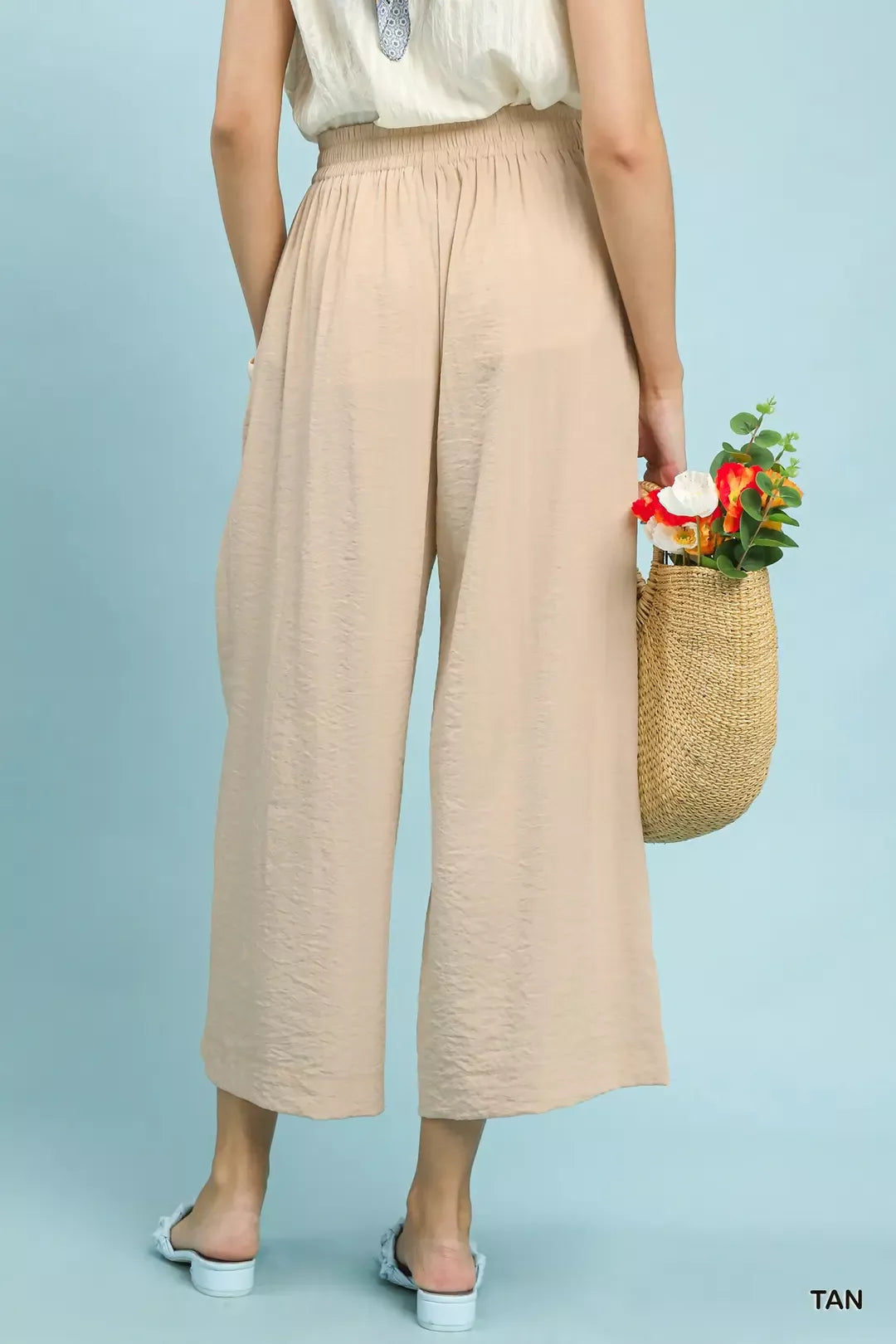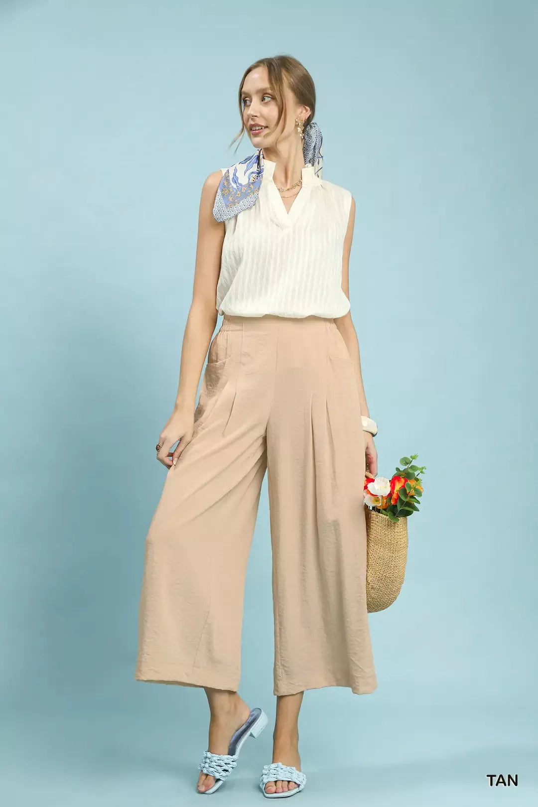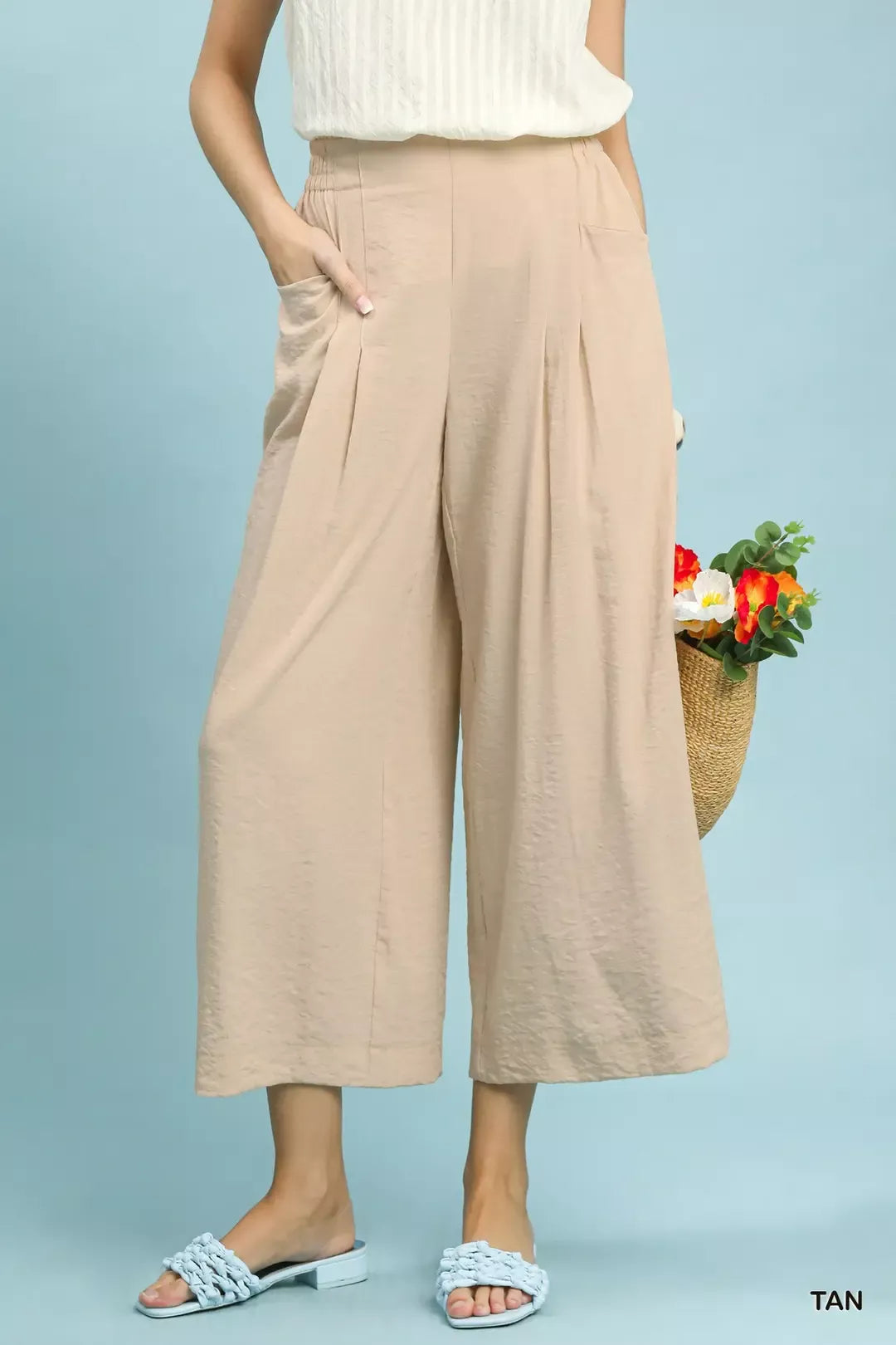 The Solid Pleat Wide-Leg Cropped Pants are a chic and versatile wardrobe staple that offers both style and comfort. These cropped wide-leg pants feature side pockets for added functionality and convenience. The pleat detailing adds a touch of sophistication and structure to the overall design. With a comfortable pull-on style and elastic back, these pants provide ease of wear and a flattering fit. Please note that these pants are not lined, making them lightweight and perfect for warmer weather.