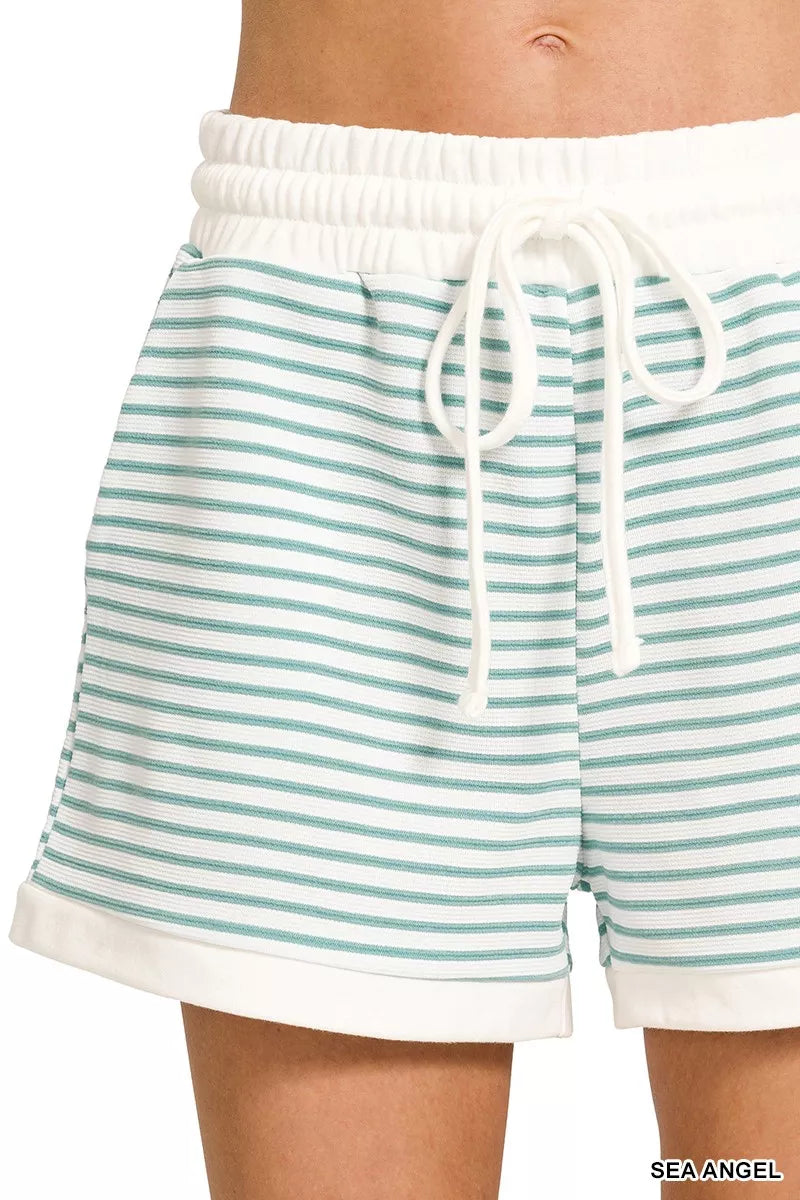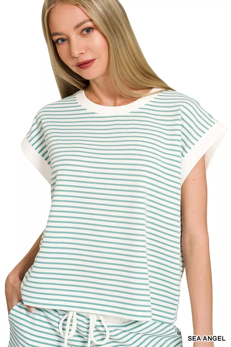 The Stripe Contrast Trim Top & Shorts Set is a coordinated outfit that combines style and comfort. The striped pattern with contrast trim adds a modern and sporty touch to this set. The matching top and shorts create a cohesive and put-together look. This set is perfect for lounging at home or running errands in style. Elevate your casual wardrobe with this fashionable and on-trend ensemble.
