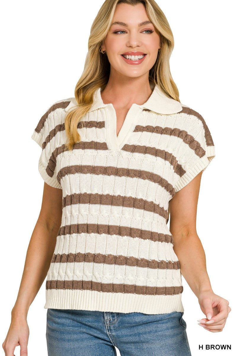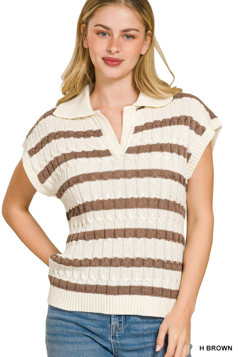 This Textured Stripe Collared Sweater Vest features a subtle textured stripe and neat collared design. Made with soft, comfortable fabric, it’s lightweight and easy to layer, ideal for casual and daily stylish looks.