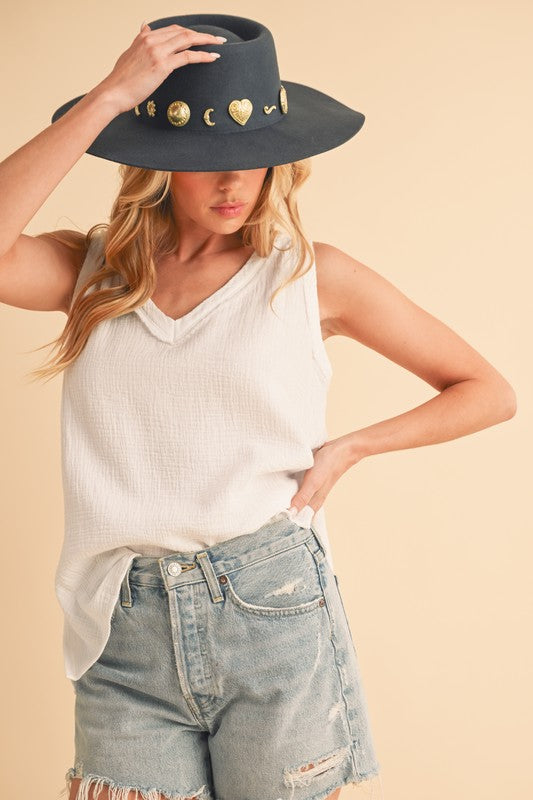 The V-Neck Wide Strap Tank is a classic and versatile wardrobe staple that offers a simple yet stylish look. Featuring a V-neckline that is flattering and feminine. The wide straps provide comfort and coverage while adding a modern touch to the tank top. This versatile piece can be easily dressed up or down, making it a perfect go-to option for various occasions.