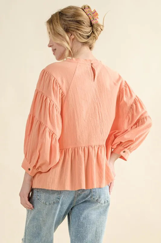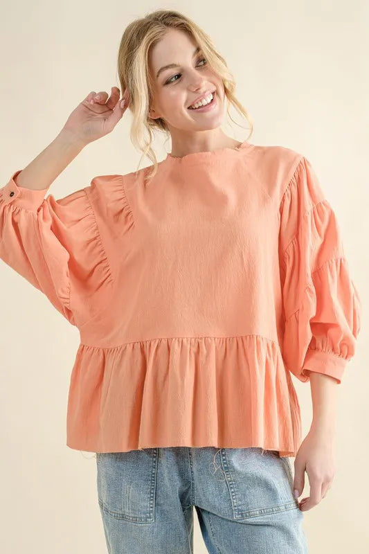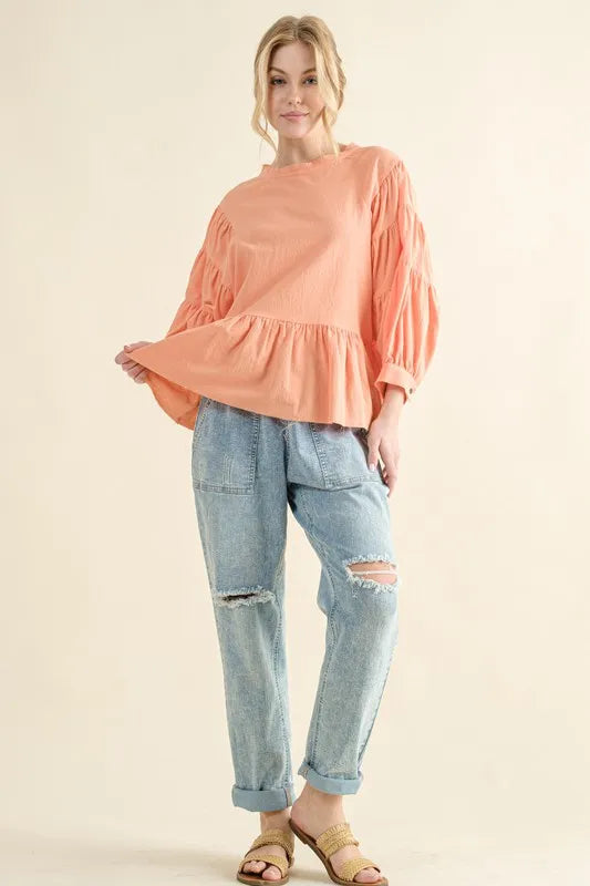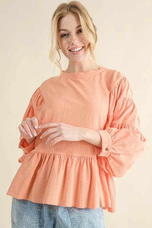 The Loose Fit Tiered Raw Edge Hem Blouse Top is a stylish and trendy piece that offers a relaxed and flowy silhouette. The loose fit design provides comfort and ease of movement, making it perfect for casual wear. The tiered layers add dimension and texture to the blouse, creating a stylish and dynamic look. The raw edge hem detail adds a touch of edge and modernity to the top, giving it a casual and laid-back vibe. This blouse can be paired with jeans or shorts for a boho-chic look or dressed up with tailored pants for a more polished ensemble. The combination of loose fit, tiered layers, and raw edge hem makes this blouse a versatile and fashionable staple for any wardrobe.