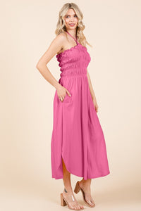 This Tie Back Shirring Dress with Pockets combines style and functionality for a versatile wardrobe staple. Featuring shirring on the bodice, this dress offers a flattering and comfortable silhouette. The addition of pockets provides convenience and practicality, perfect for carrying small essentials. Whether dressed up with heels or styled casually with sandals, this dress is perfect for various occasions. Elevate your look with this effortlessly chic and on-trend dress that seamlessly blends fashion and comfort.