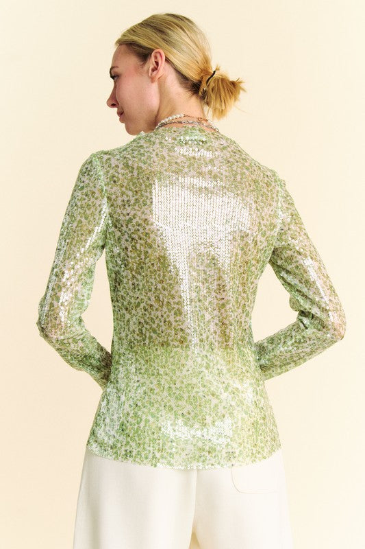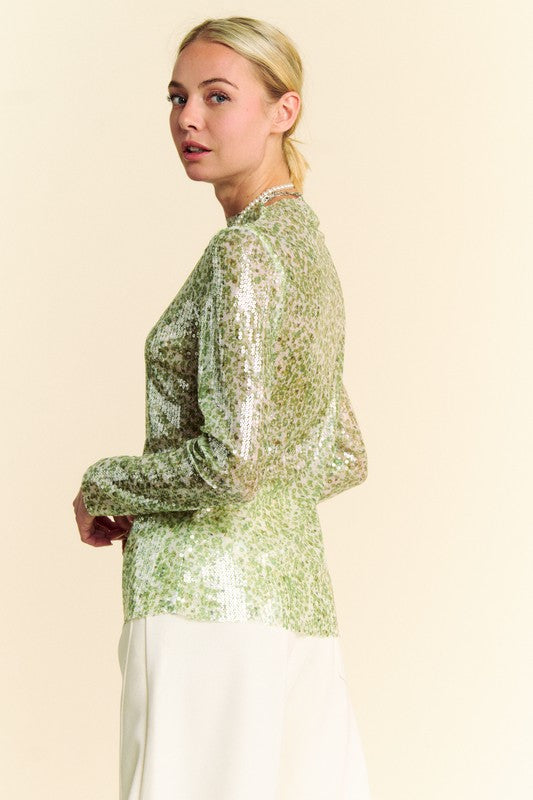 Davi & Dani Sequin Mock Neck Long Sleeve Mesh Top