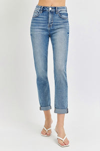 High Rise Cropped Roll Up Jeans feature a stylish high waist design and a trendy cropped length with rolled-up cuffs. These jeans are perfect for showcasing your favorite shoes and adding a modern touch to your outfit. The high rise silhouette enhances your curves and offers a flattering fit. The cropped length is versatile and can be worn with sneakers, heels, or flats. Made from quality denim fabric, these jeans are comfortable for all-day wear. Whether you're running errands or going out for brunch, these jeans are a chic and versatile option for your wardrobe.