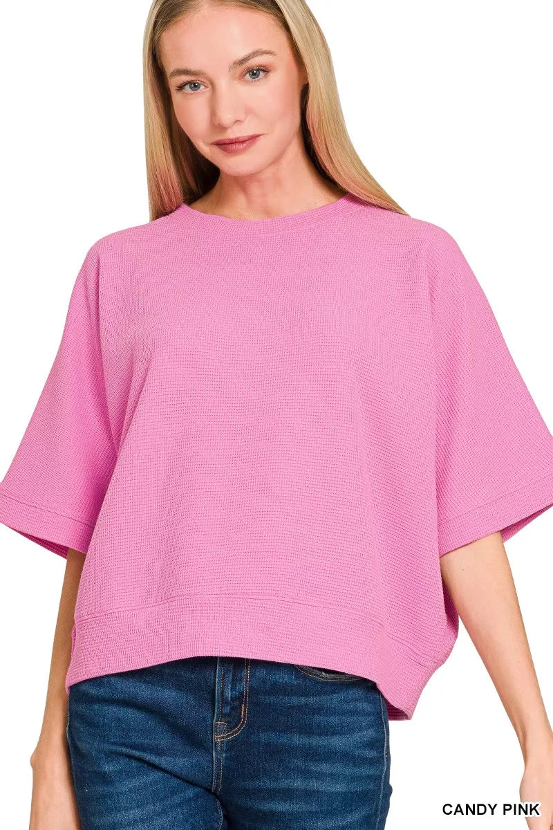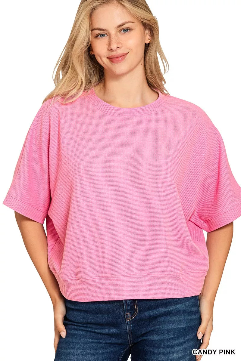 This double knit banded bottom short sleeve top is a versatile and stylish piece that offers a modern twist to your wardrobe. The double knit fabric provides a structured and high-quality feel, ensuring durability and comfort. The banded bottom adds a fashionable touch while creating a flattering silhouette. Perfect for casual outings or dressed up with accessories, this top is a must-have staple for any wardrobe. Elevate your everyday look with this chic and versatile double knit short sleeve top that effortlessly combines comfort and style.
