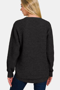 Stay cozy and chic in this High Low Long Sleeve Waffle Sweater. With its unique waffle texture and flattering high-low hemline, this sweater is perfect for casual days or evenings out. The long sleeves add extra warmth, while the relaxed fit ensures comfort all day long. Pair it with your favorite jeans or leggings for a stylish and effortless look. Available in a range of colors to suit your personal style. Upgrade your sweater game with this versatile and trendy piece!